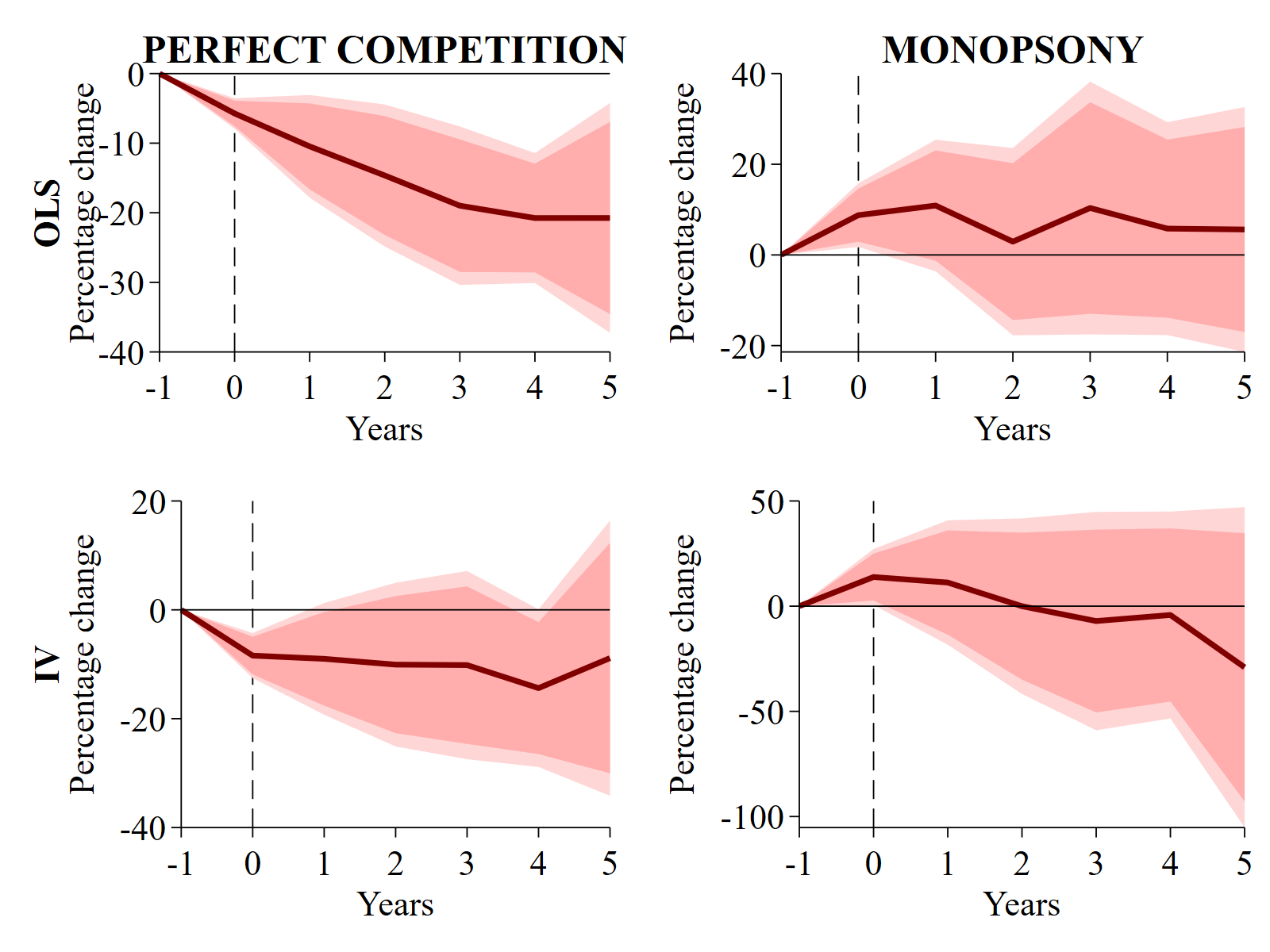 This paper empirically tests whether minimum wages may have positive employment effects when diverging from a perfect competition framework. I use administrative data from 1986 to 2013 to segment Portugal into several local labour markets and construct Herfindahl–Hirschman Indices to measure concentration levels in each market. I find that increased minimum wage exposure has differential employment effects depending on labour market concentration - estimates indicate employment responds negatively in highly competitive markets and positively in highly concentrated ones. These results are robust to the usage of instrumental variables and to different definitions of local labour markets, although the persistence of these effects varies across specifications. Labour markets are highly heterogeneous in their concentration level, which can help reconcile the conflicting results in the minimum wage literature and provide new policy insights.